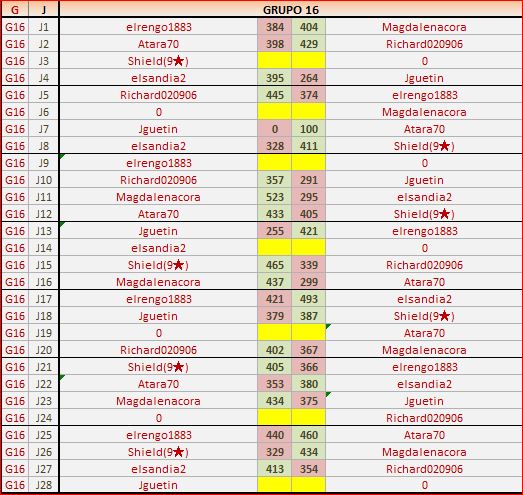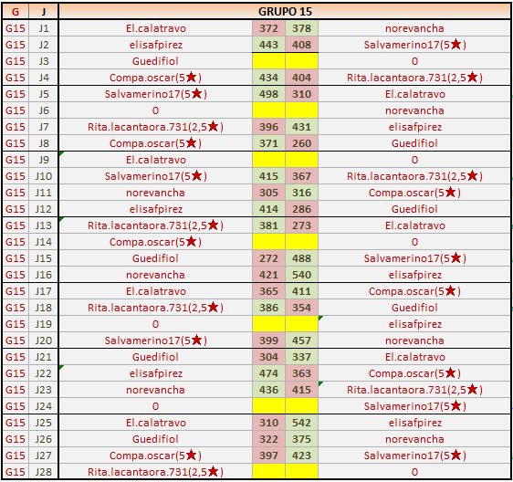 Deja un comentarioEn está página se irán publicando los resultados de las diferentes partidas, siendo ambos jugadores responsables de subirlos o de comprobar que ya hayan sido publicados, insertando un COMENTARIO en la parte inferior de la pantalla (opción “Deja tu comentario”), indicando el nombre de los dos jugadores y los puntos obtenidos en la partida.