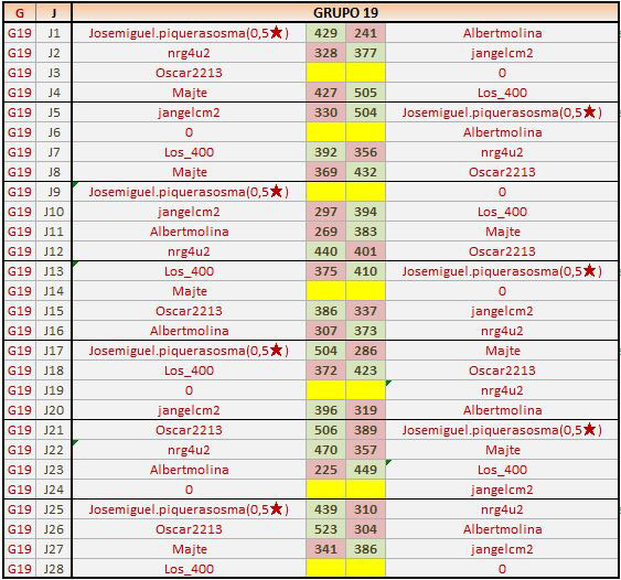 Deja un comentarioEn está página se irán publicando los resultados de las diferentes partidas, siendo ambos jugadores responsables de subirlos o de comprobar que ya hayan sido publicados, insertando un COMENTARIO en la parte inferior de la pantalla (opción “Deja tu comentario”), indicando el nombre de los dos jugadores y los puntos obtenidos en la partida.