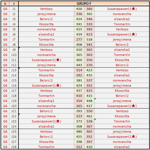 Deja un comentarioEn está página se irán publicando los resultados de las diferentes partidas, siendo ambos jugadores responsables de subirlos o de comprobar que ya hayan sido publicados, insertando un COMENTARIO en la parte inferior de la pantalla (opción “Deja tu comentario”), indicando el nombre de los dos jugadores y los puntos obtenidos en la partida.