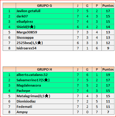 Deja un comentarioEn está página se irán publicando los resultados de las diferentes partidas, siendo ambos jugadores responsables de subirlos o de comprobar que ya hayan sido publicados, insertando un COMENTARIO en la parte inferior de la pantalla (opción “Deja tu comentario”), indicando el nombre de los dos jugadores y los puntos obtenidos en la partida.