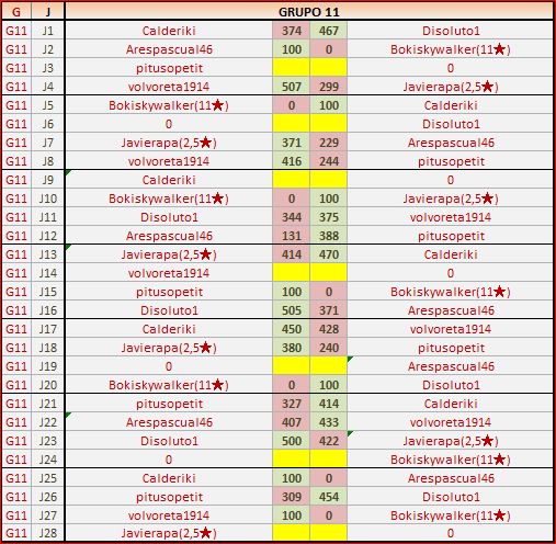 Deja un comentarioEn está página se irán publicando los resultados de las diferentes partidas, siendo ambos jugadores responsables de subirlos o de comprobar que ya hayan sido publicados, insertando un COMENTARIO en la parte inferior de la pantalla (opción “Deja tu comentario”), indicando el nombre de los dos jugadores y los puntos obtenidos en la partida.