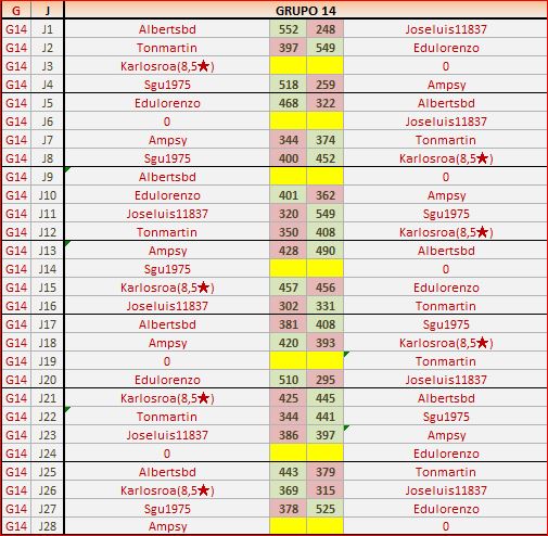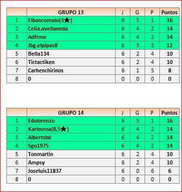 Deja un comentarioEn está página se irán publicando los resultados de las diferentes partidas, siendo ambos jugadores responsables de subirlos o de comprobar que ya hayan sido publicados, insertando un COMENTARIO en la parte inferior de la pantalla (opción “Deja tu comentario”), indicando el nombre de los dos jugadores y los puntos obtenidos en la partida.