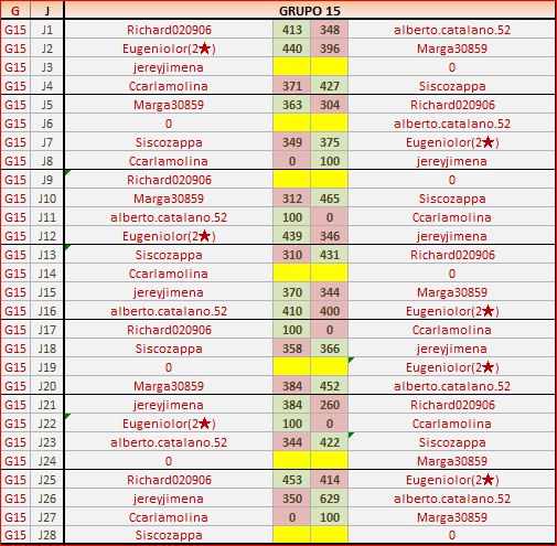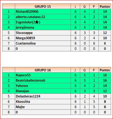 Deja un comentarioEn está página se irán publicando los resultados de las diferentes partidas, siendo ambos jugadores responsables de subirlos o de comprobar que ya hayan sido publicados, insertando un COMENTARIO en la parte inferior de la pantalla (opción “Deja tu comentario”), indicando el nombre de los dos jugadores y los puntos obtenidos en la partida.