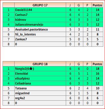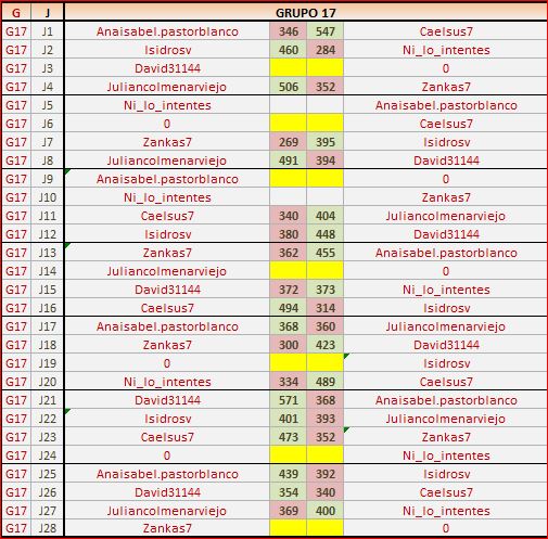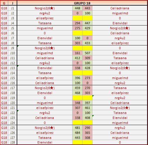 Deja un comentarioEn está página se irán publicando los resultados de las diferentes partidas, siendo ambos jugadores responsables de subirlos o de comprobar que ya hayan sido publicados, insertando un COMENTARIO en la parte inferior de la pantalla (opción “Deja tu comentario”), indicando el nombre de los dos jugadores y los puntos obtenidos en la partida.