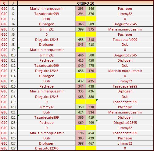 Deja un comentarioEn está página se irán publicando los resultados de las diferentes partidas, siendo ambos jugadores responsables de subirlos o de comprobar que ya hayan sido publicados, insertando un COMENTARIO en la parte inferior de la pantalla (opción “Deja tu comentario”), indicando el nombre de los dos jugadores y los puntos obtenidos en la partida.