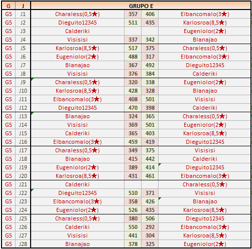 Deja un comentarioEn está página se irán publicando los resultados de las diferentes partidas, siendo ambos jugadores responsables de subirlos o de comprobar que ya hayan sido publicados, insertando un COMENTARIO en la parte inferior de la pantalla (opción “Deja tu comentario”), indicando el nombre de los dos jugadores y los puntos obtenidos en la partida.