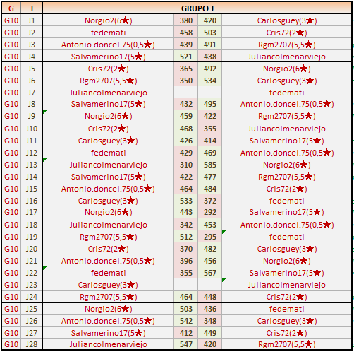 Deja un comentarioEn está página se irán publicando los resultados de las diferentes partidas, siendo ambos jugadores responsables de subirlos o de comprobar que ya hayan sido publicados, insertando un COMENTARIO en la parte inferior de la pantalla (opción “Deja tu comentario”), indicando el nombre de los dos jugadores y los puntos obtenidos en la partida.