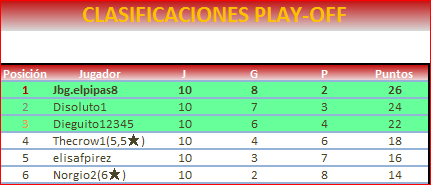 Otros 3 que se estrenan. Enhorabuena! Además el campeón, el que eliminó al que me eliminó a mí… Hay que consolarse no??… Jajajaja….. Enhorabuena a Eli también, tendrás más oportunidades. De los otros dos, nada que descubrir, están en casi todos los fregaos….. Enhorabuena también,