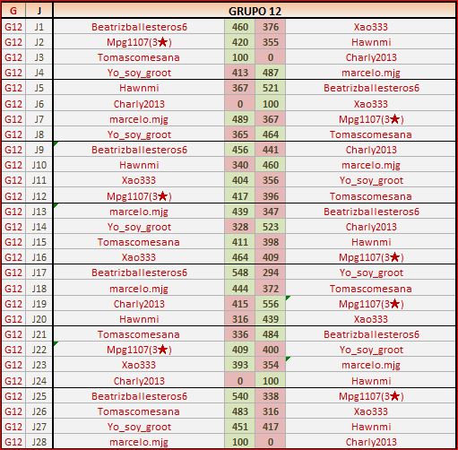 Deja un comentarioEn está página se irán publicando los resultados de las diferentes partidas, siendo ambos jugadores responsables de subirlos o de comprobar que ya hayan sido publicados, insertando un COMENTARIO en la parte inferior de la pantalla (opción “Deja tu comentario”), indicando el nombre de los dos jugadores y los puntos obtenidos en la partida.