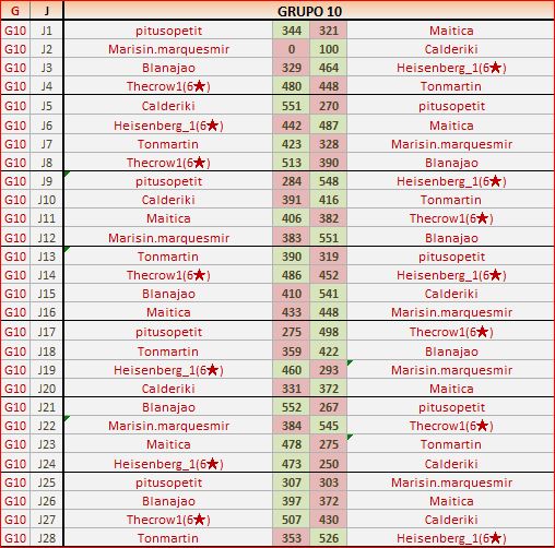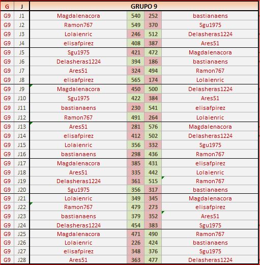 Deja un comentarioEn está página se irán publicando los resultados de las diferentes partidas, siendo ambos jugadores responsables de subirlos o de comprobar que ya hayan sido publicados, insertando un COMENTARIO en la parte inferior de la pantalla (opción “Deja tu comentario”), indicando el nombre de los dos jugadores y los puntos obtenidos en la partida.