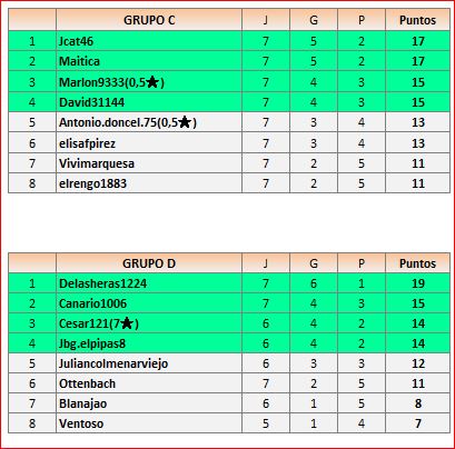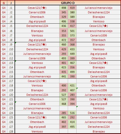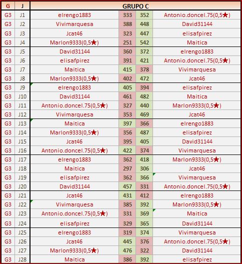 Deja un comentarioEn está página se irán publicando los resultados de las diferentes partidas, siendo ambos jugadores responsables de subirlos o de comprobar que ya hayan sido publicados, insertando un COMENTARIO en la parte inferior de la pantalla (opción “Deja tu comentario”), indicando el nombre de los dos jugadores y los puntos obtenidos en la partida.