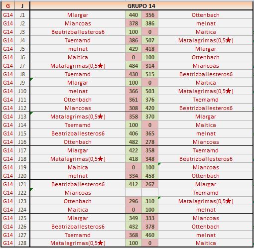 Deja un comentarioEn está página se irán publicando los resultados de las diferentes partidas, siendo ambos jugadores responsables de subirlos o de comprobar que ya hayan sido publicados, insertando un COMENTARIO en la parte inferior de la pantalla (opción “Deja tu comentario”), indicando el nombre de los dos jugadores y los puntos obtenidos en la partida.