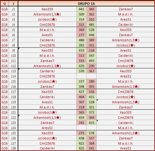 Deja un comentarioEn está página se irán publicando los resultados de las diferentes partidas, siendo ambos jugadores responsables de subirlos o de comprobar que ya hayan sido publicados, insertando un COMENTARIO en la parte inferior de la pantalla (opción “Deja tu comentario”), indicando el nombre de los dos jugadores y los puntos obtenidos en la partida.