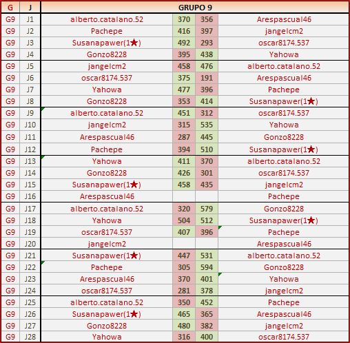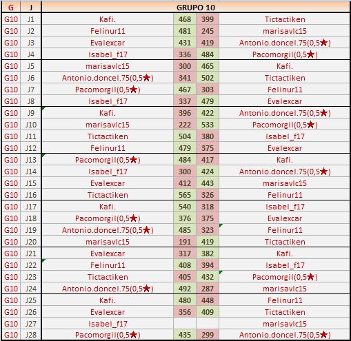 Deja un comentarioEn está página se irán publicando los resultados de las diferentes partidas, siendo ambos jugadores responsables de subirlos o de comprobar que ya hayan sido publicados, insertando un COMENTARIO en la parte inferior de la pantalla (opción “Deja tu comentario”), indicando el nombre de los dos jugadores y los puntos obtenidos en la partida.