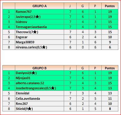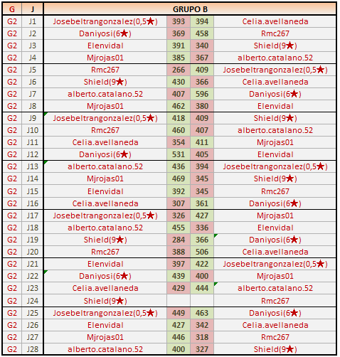 Deja un comentarioEn está página se irán publicando los resultados de las diferentes partidas, siendo ambos jugadores responsables de subirlos o de comprobar que ya hayan sido publicados, insertando un COMENTARIO en la parte inferior de la pantalla (opción “Deja tu comentario”), indicando el nombre de los dos jugadores y los puntos obtenidos en la partida.