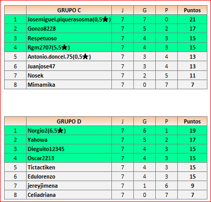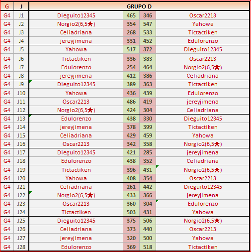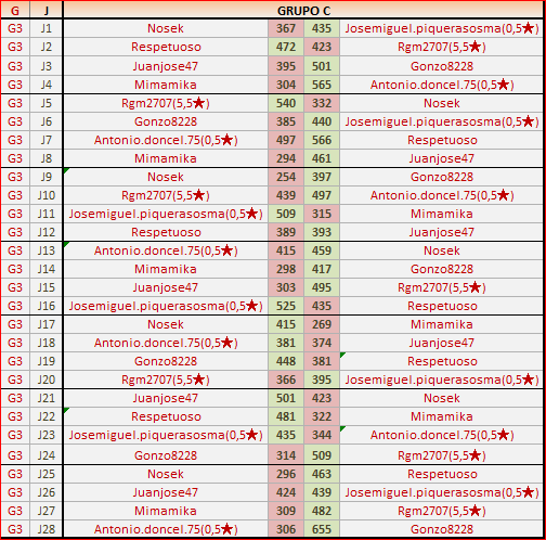 Deja un comentarioEn está página se irán publicando los resultados de las diferentes partidas, siendo ambos jugadores responsables de subirlos o de comprobar que ya hayan sido publicados, insertando un COMENTARIO en la parte inferior de la pantalla (opción “Deja tu comentario”), indicando el nombre de los dos jugadores y los puntos obtenidos en la partida.