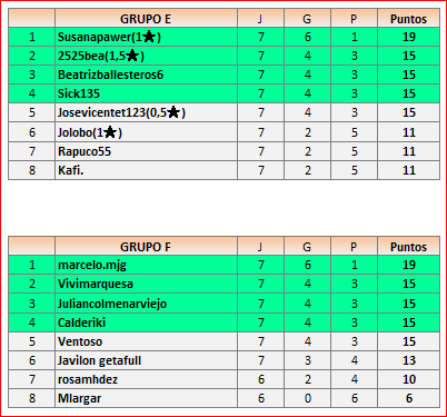 Deja un comentarioEn está página se irán publicando los resultados de las diferentes partidas, siendo ambos jugadores responsables de subirlos o de comprobar que ya hayan sido publicados, insertando un COMENTARIO en la parte inferior de la pantalla (opción “Deja tu comentario”), indicando el nombre de los dos jugadores y los puntos obtenidos en la partida.