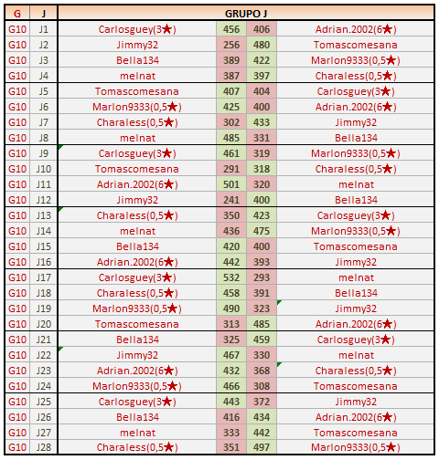 Deja un comentarioEn está página se irán publicando los resultados de las diferentes partidas, siendo ambos jugadores responsables de subirlos o de comprobar que ya hayan sido publicados, insertando un COMENTARIO en la parte inferior de la pantalla (opción “Deja tu comentario”), indicando el nombre de los dos jugadores y los puntos obtenidos en la partida.