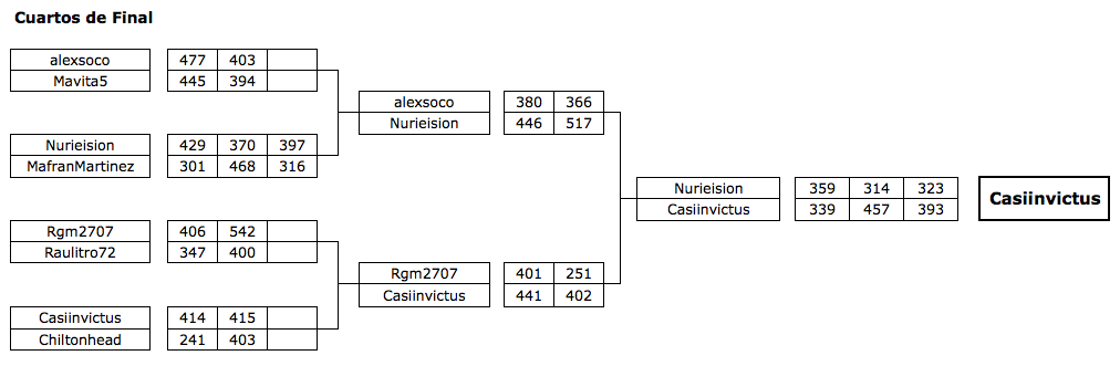 En las eliminatorias podéis dejar vuestro resultado una vez finalizadas las 3 partidas.