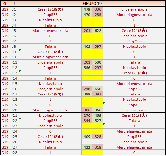 Deja un comentarioEn está página se irán publicando los resultados de las diferentes partidas, siendo ambos jugadores responsables de subirlos o de comprobar que ya hayan sido publicados, insertando un COMENTARIO en la parte inferior de la pantalla (opción “Deja tu comentario”), indicando el nombre de los dos jugadores y los puntos obtenidos en la partida.