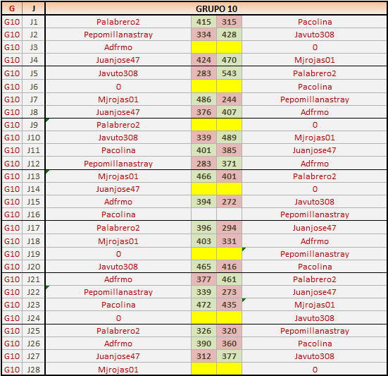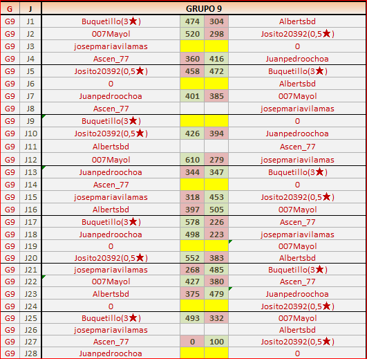 Deja un comentarioEn está página se irán publicando los resultados de las diferentes partidas, siendo ambos jugadores responsables de subirlos o de comprobar que ya hayan sido publicados, insertando un COMENTARIO en la parte inferior de la pantalla (opción “Deja tu comentario”), indicando el nombre de los dos jugadores y los puntos obtenidos en la partida.