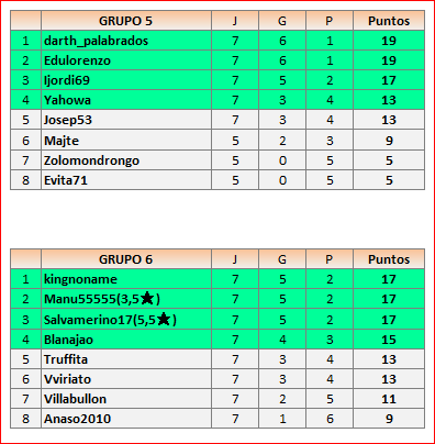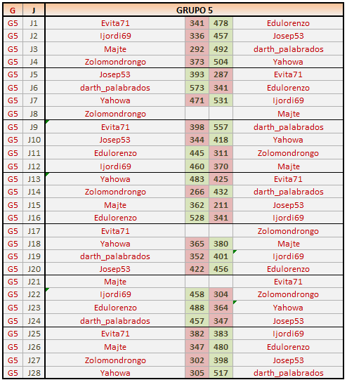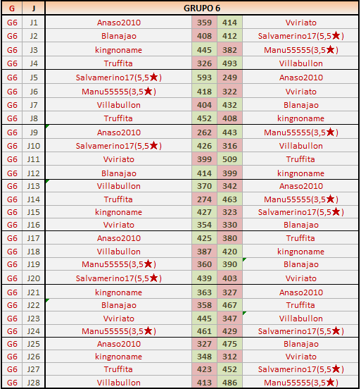 Deja un comentarioEn está página se irán publicando los resultados de las diferentes partidas, siendo ambos jugadores responsables de subirlos o de comprobar que ya hayan sido publicados, insertando un COMENTARIO en la parte inferior de la pantalla (opción “Deja tu comentario”), indicando el nombre de los dos jugadores y los puntos obtenidos en la partida.