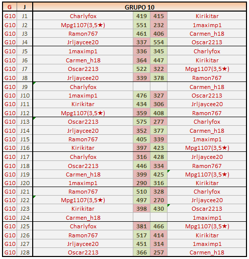 Deja un comentarioEn está página se irán publicando los resultados de las diferentes partidas, siendo ambos jugadores responsables de subirlos o de comprobar que ya hayan sido publicados, insertando un COMENTARIO en la parte inferior de la pantalla (opción “Deja tu comentario”), indicando el nombre de los dos jugadores y los puntos obtenidos en la partida.