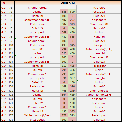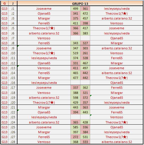 Deja un comentarioEn está página se irán publicando los resultados de las diferentes partidas, siendo ambos jugadores responsables de subirlos o de comprobar que ya hayan sido publicados, insertando un COMENTARIO en la parte inferior de la pantalla (opción “Deja tu comentario”), indicando el nombre de los dos jugadores y los puntos obtenidos en la partida.