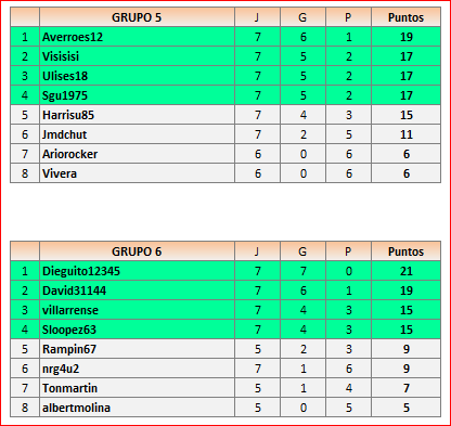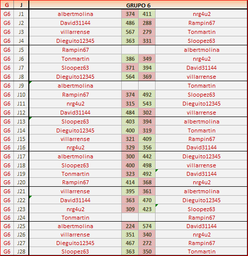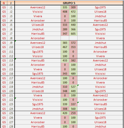 Deja un comentarioEn está página se irán publicando los resultados de las diferentes partidas, siendo ambos jugadores responsables de subirlos o de comprobar que ya hayan sido publicados, insertando un COMENTARIO en la parte inferior de la pantalla (opción “Deja tu comentario”), indicando el nombre de los dos jugadores y los puntos obtenidos en la partida.