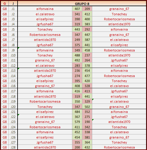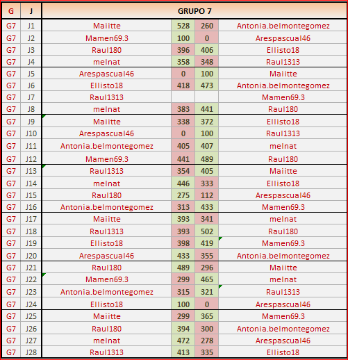 Deja un comentarioEn está página se irán publicando los resultados de las diferentes partidas, siendo ambos jugadores responsables de subirlos o de comprobar que ya hayan sido publicados, insertando un COMENTARIO en la parte inferior de la pantalla (opción “Deja tu comentario”), indicando el nombre de los dos jugadores y los puntos obtenidos en la partida.