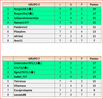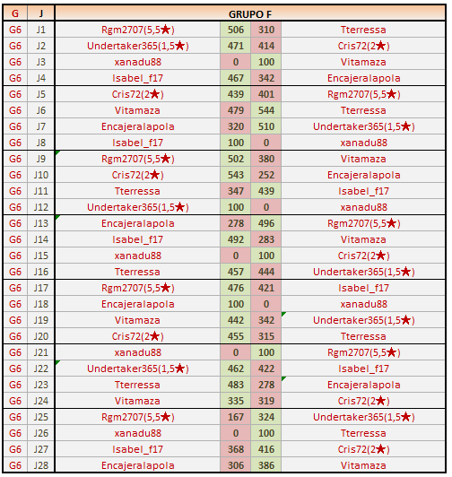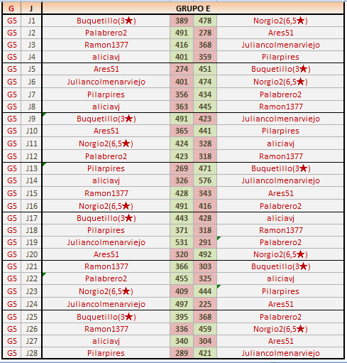 Deja un comentarioEn está página se irán publicando los resultados de las diferentes partidas, siendo ambos jugadores responsables de subirlos o de comprobar que ya hayan sido publicados, insertando un COMENTARIO en la parte inferior de la pantalla (opción “Deja tu comentario”), indicando el nombre de los dos jugadores y los puntos obtenidos en la partida.