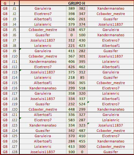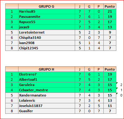 Deja un comentarioEn está página se irán publicando los resultados de las diferentes partidas, siendo ambos jugadores responsables de subirlos o de comprobar que ya hayan sido publicados, insertando un COMENTARIO en la parte inferior de la pantalla (opción “Deja tu comentario”), indicando el nombre de los dos jugadores y los puntos obtenidos en la partida.