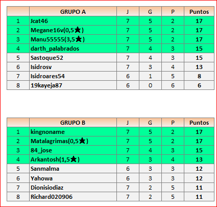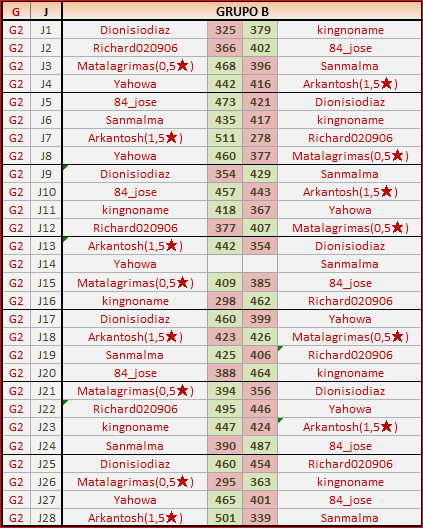 Deja un comentarioEn está página se irán publicando los resultados de las diferentes partidas, siendo ambos jugadores responsables de subirlos o de comprobar que ya hayan sido publicados, insertando un COMENTARIO en la parte inferior de la pantalla (opción “Deja tu comentario”), indicando el nombre de los dos jugadores y los puntos obtenidos en la partida.