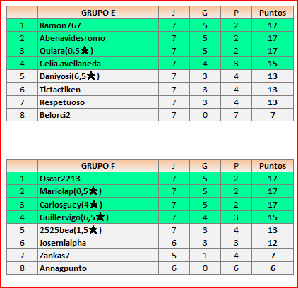Deja un comentarioEn está página se irán publicando los resultados de las diferentes partidas, siendo ambos jugadores responsables de subirlos o de comprobar que ya hayan sido publicados, insertando un COMENTARIO en la parte inferior de la pantalla (opción “Deja tu comentario”), indicando el nombre de los dos jugadores y los puntos obtenidos en la partida.