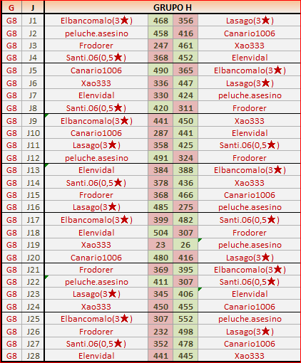 Deja un comentarioEn está página se irán publicando los resultados de las diferentes partidas, siendo ambos jugadores responsables de subirlos o de comprobar que ya hayan sido publicados, insertando un COMENTARIO en la parte inferior de la pantalla (opción “Deja tu comentario”), indicando el nombre de los dos jugadores y los puntos obtenidos en la partida.