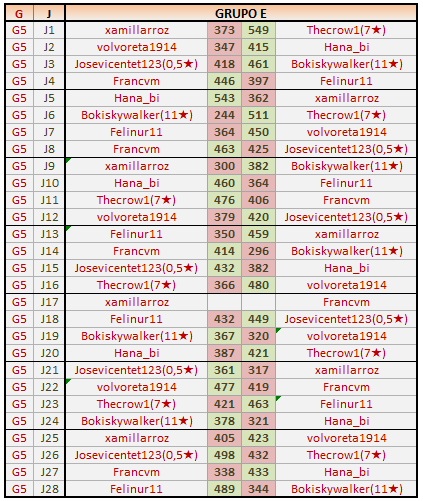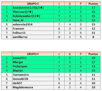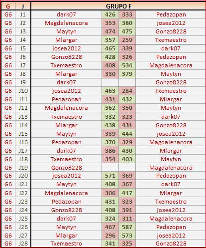 Deja un comentarioEn está página se irán publicando los resultados de las diferentes partidas, siendo ambos jugadores responsables de subirlos o de comprobar que ya hayan sido publicados, insertando un COMENTARIO en la parte inferior de la pantalla (opción “Deja tu comentario”), indicando el nombre de los dos jugadores y los puntos obtenidos en la partida.