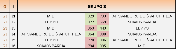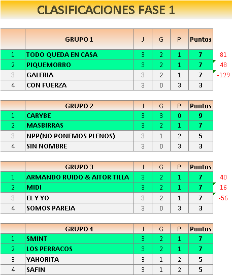 PASAN A SIGUIENTE FASE (03 de Abril a las 12 Horas) LAS DOS PRIMERAS PAREJAS CLASIFICADAS