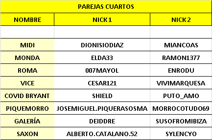 ABRE LA PAREJA SITUADA ARRIBA. PASADAS 2 HORAS DEL INICIO DE LA JORNADA PODRÁ HACERLO LA PAREJA DE ABAJO.