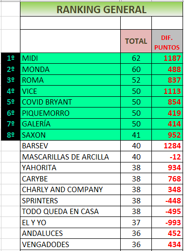 Revisad por favor la puntuación de MASCARILLAS DE ARCILLA. Faltan por sumar los dos puntos de los bonus por colocar Corona y Virus en la última jornada.