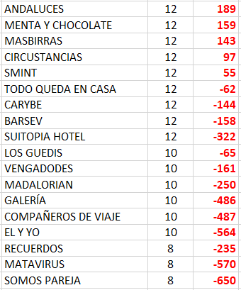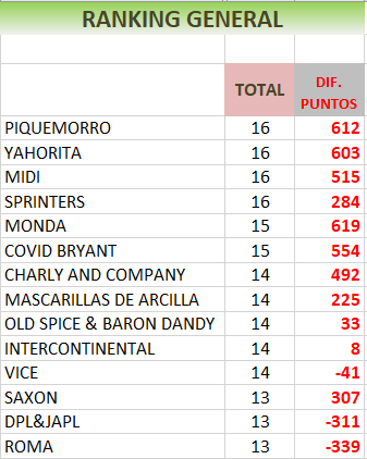 Ahora ya tenemos el ranking correcto. Perdonad las molestias.