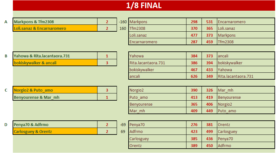 FIN 1/8 FINAL: VIERNES 26, 21:00 H.