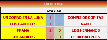 El ganador será la pareja que gane más partidas de las 4 que consta la eliminatoria. En caso de empate a 2 victorias: