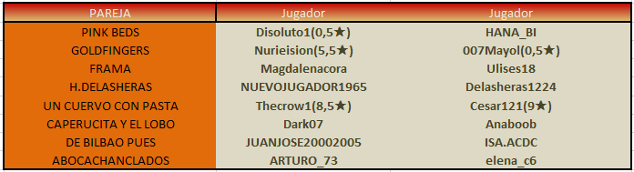 Al conjunto de las dos partidas lo denominamos PARTIDO. El capitán de cada pareja tiene que publicar antes de la fecha fin de plazo, de la siguiente manera: