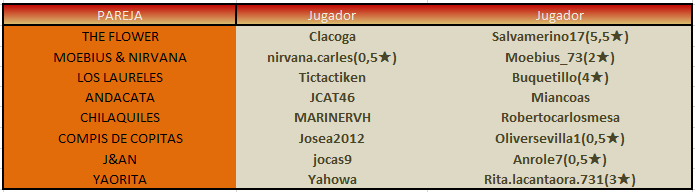Al conjunto de las dos partidas lo denominamos PARTIDO. El capitán de cada pareja tiene que publicar antes de la fecha fin de plazo, de la siguiente manera: