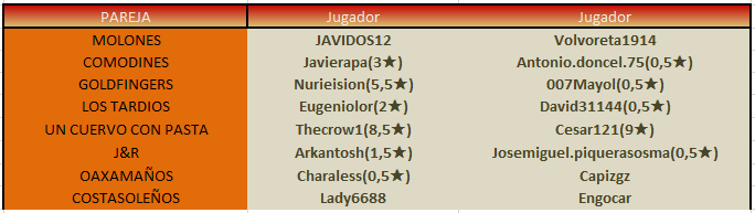 Al conjunto de las dos partidas lo denominamos PARTIDO. El capitán de cada pareja tiene que publicar antes de la fecha fin de plazo, de la siguiente manera: