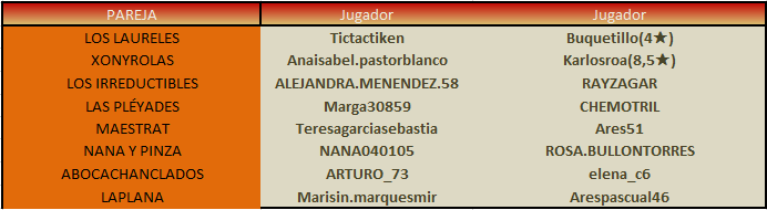 Al conjunto de las dos partidas lo denominamos PARTIDO. El capitán de cada pareja tiene que publicar antes de la fecha fin de plazo, de la siguiente manera: