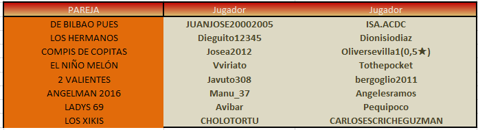 Al conjunto de las dos partidas lo denominamos PARTIDO. El capitán de cada pareja tiene que publicar antes de la fecha fin de plazo, de la siguiente manera: