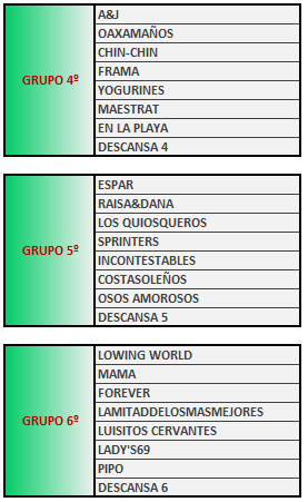 Buscar vuestro grupo y acceder a la subpagina para ver los emparejamientos. La formación de los grupos es por la clasificación obtenida en la Jornada 2