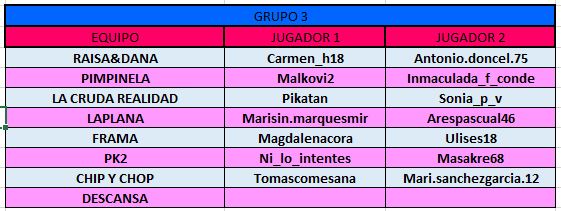 Deja un comentarioAbrirán partidas los jugadores de la pareja situada en la izquierda y las partidas las designará en Capitán. Al conjunto de las 2 partidas se le denominará PARTIDO. Y será el Capitán de cada pareja el encargado de publicar antes del fin de plazo, los resultados de cada partida, así como la suma total de puntos y el marcador por victorias.