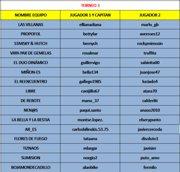 6TORNEO A LAS 3 POR PAREJAS